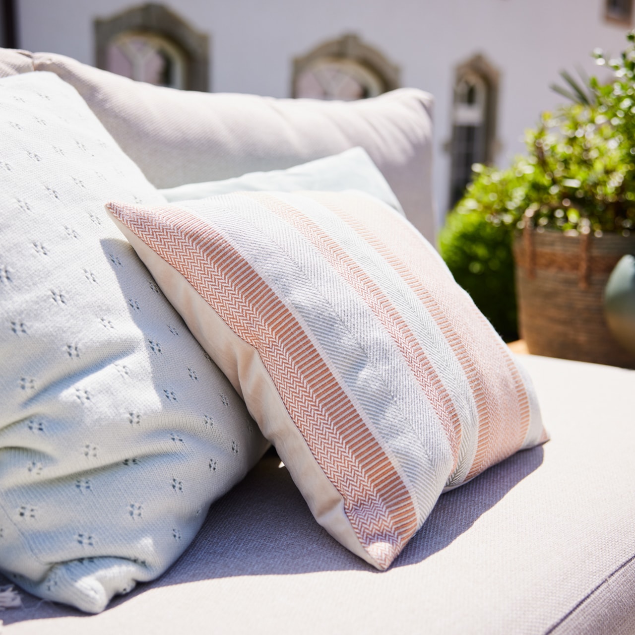 Here, it is mixed with other pastel shades, such as beige and light wood, to accentuate this soft and luminous effect and create a charming outdoor corner.