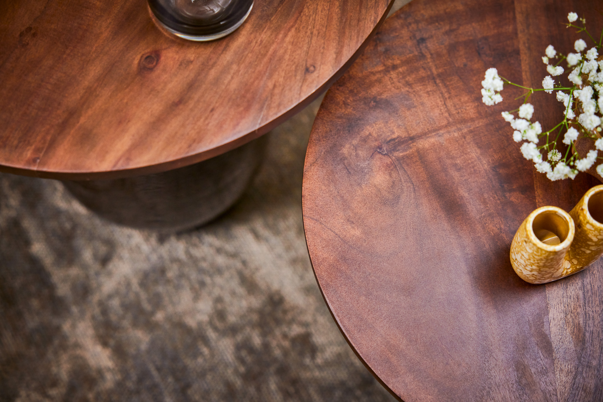 Autour de lui, un buffet de la marque Zuiver en bois chaleureux ajoute une touche naturelle, tandis que les tables d'appoint, également en bois, apportent fonctionnalité et élégance.